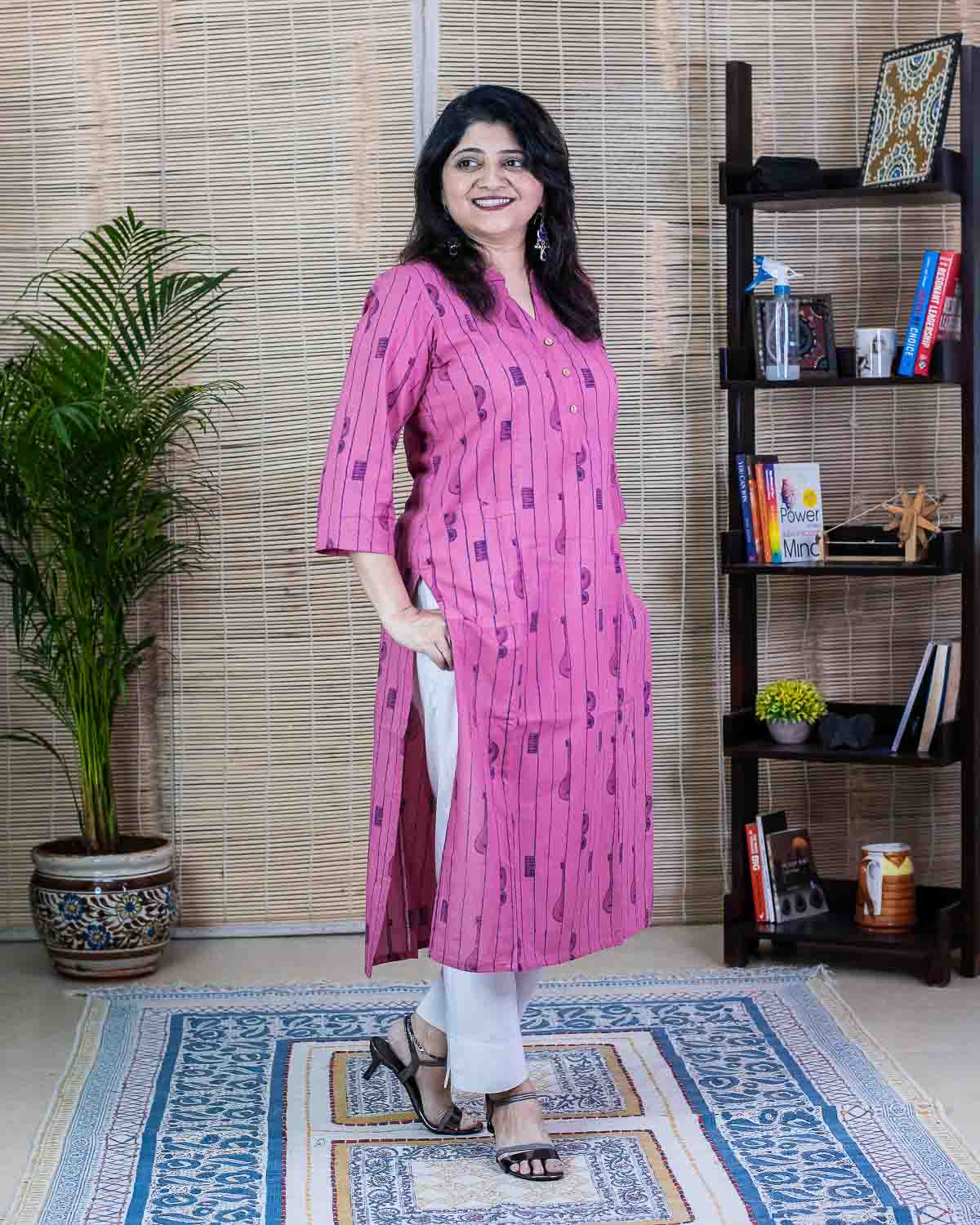 Signature product - Bandish musical printed straight fit kurta. 3/4th Sleeves. Trouser not included.