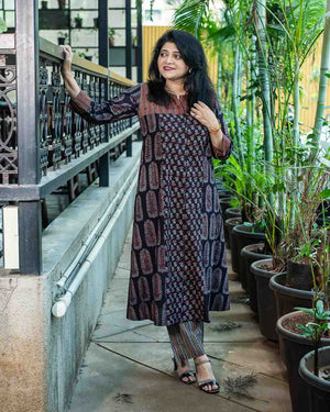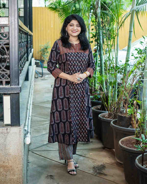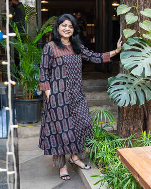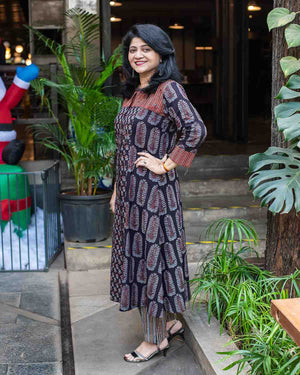 Black Ajrakh Patchwork dress cum kurta