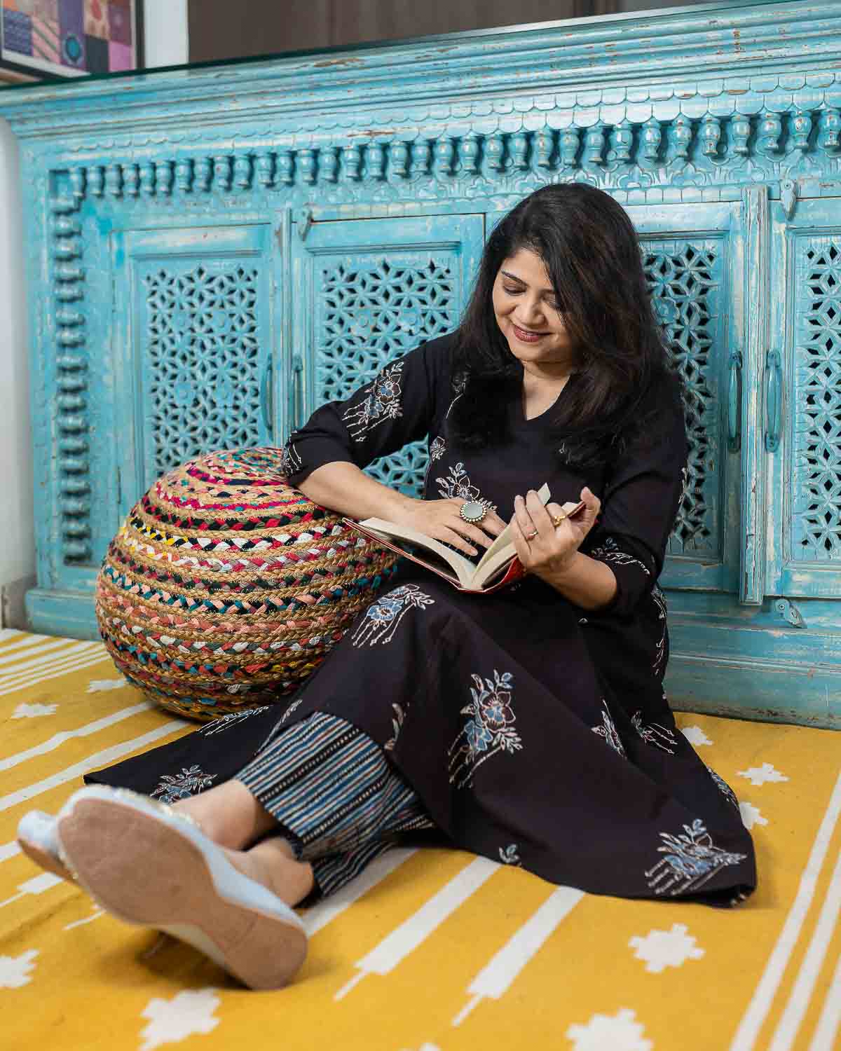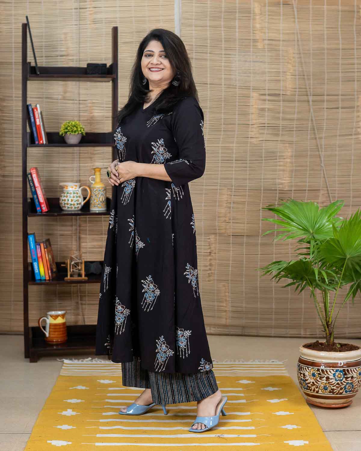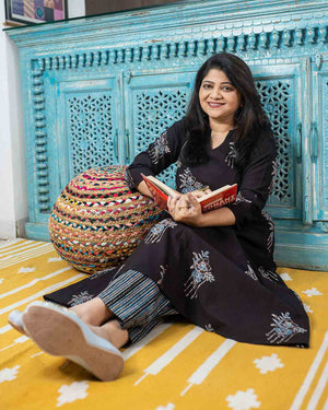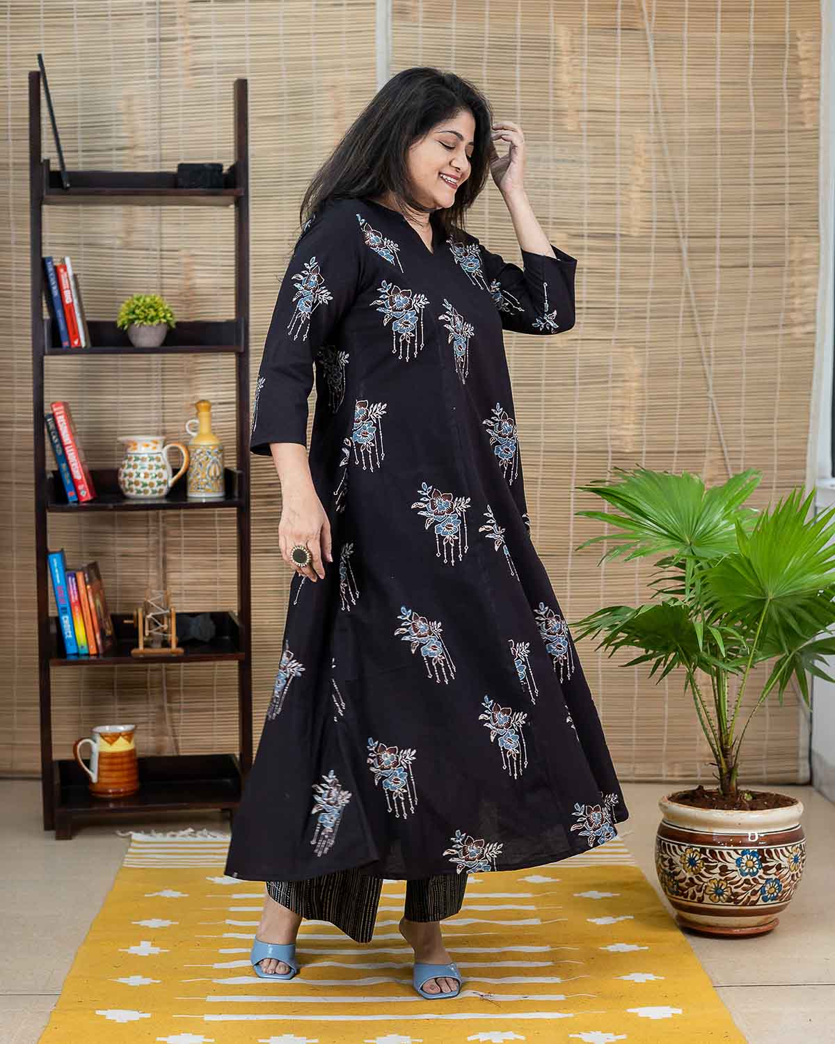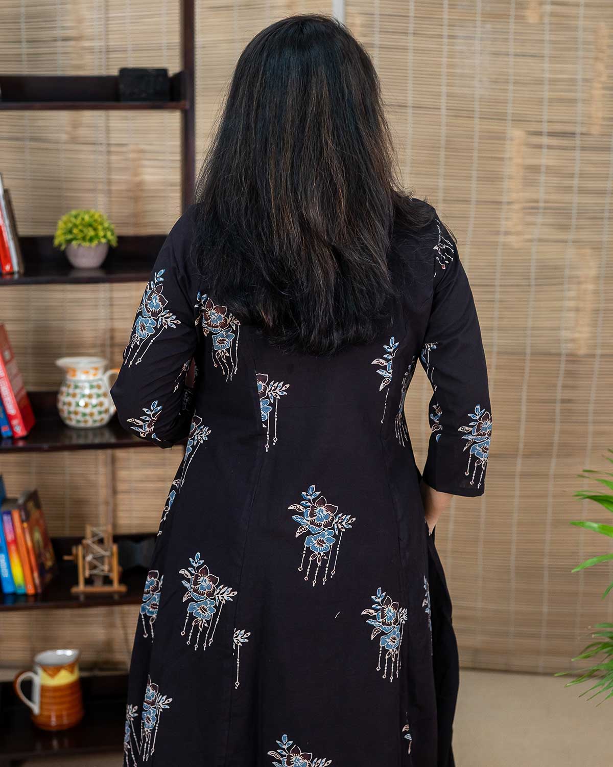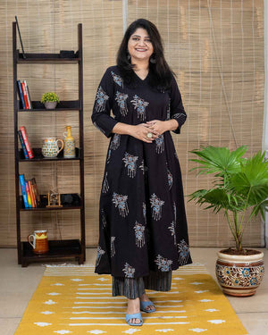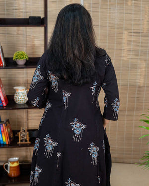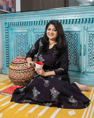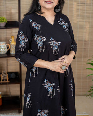 Black Ajrakh long kurta with flare
