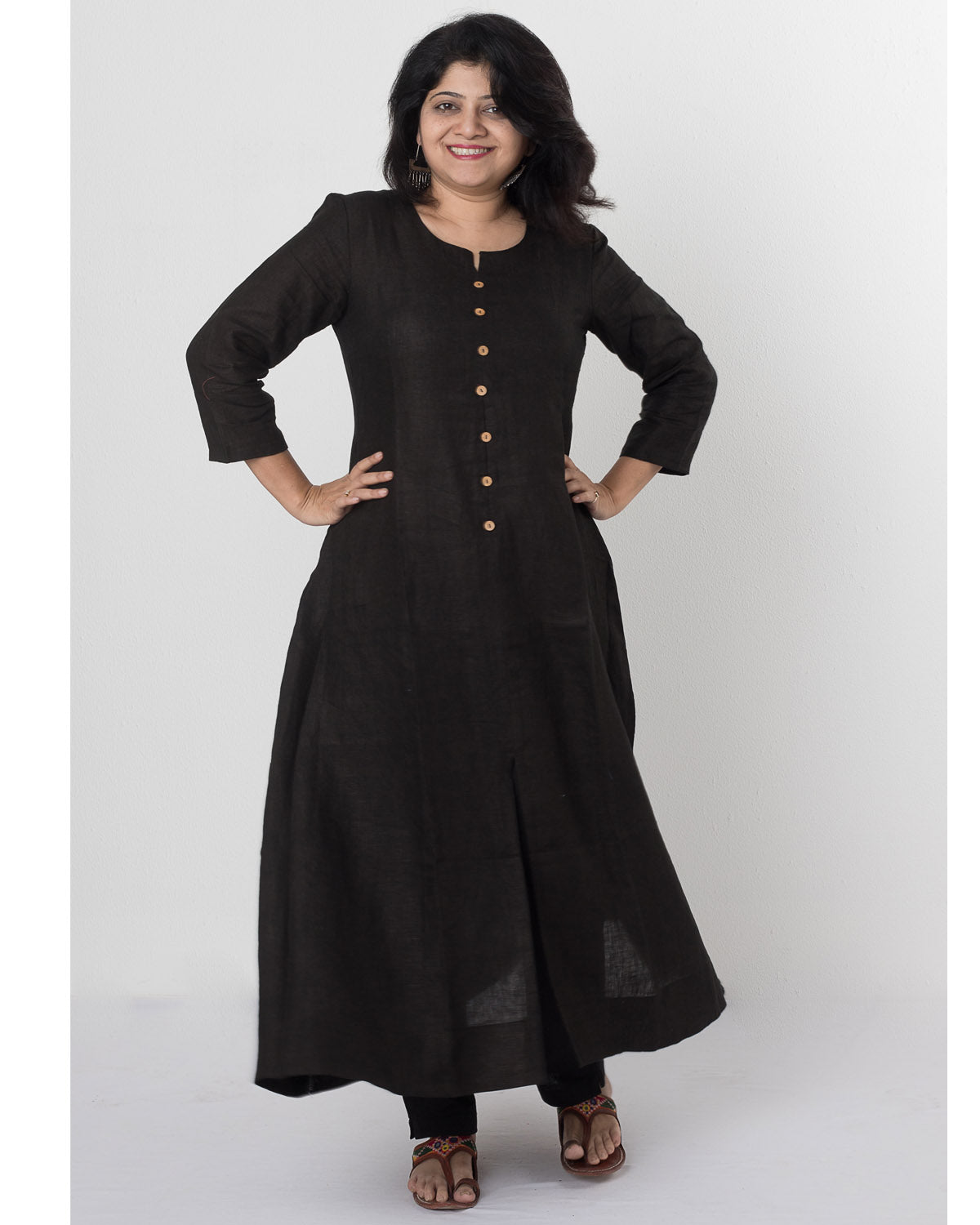 Black Linen Kurta with buttons in front gives a smart look. Buy this ethnic wear for any casual/office wear.