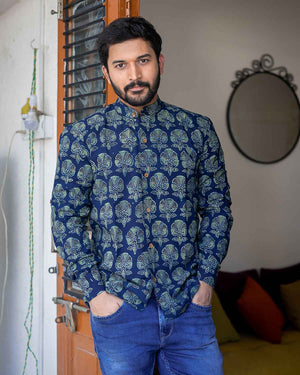 Blue Ajrakh full sleeves Cotton Shirt