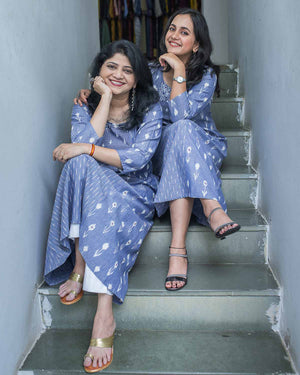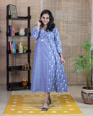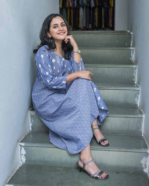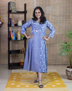 Blue Ikkat embroidered dress / kurta