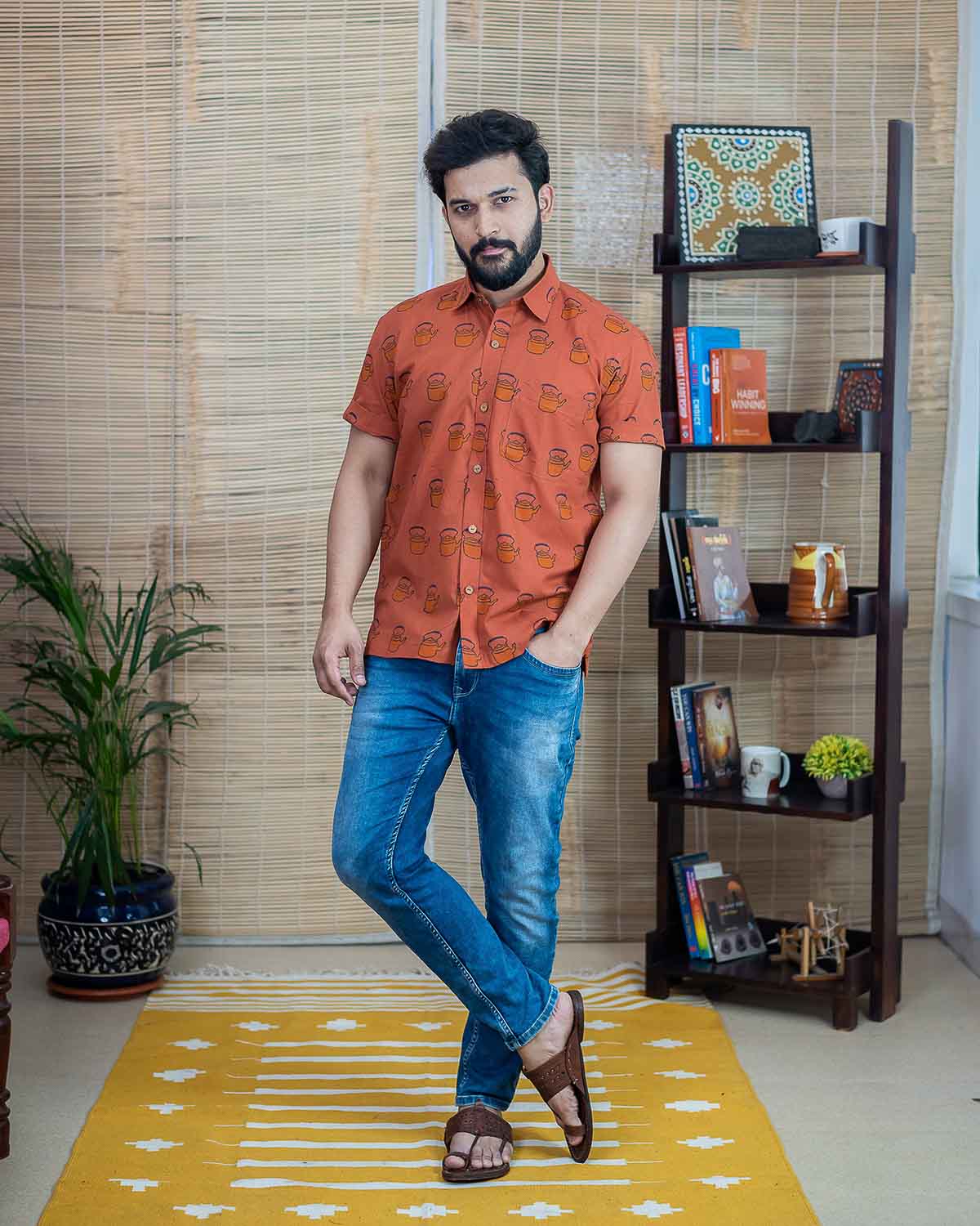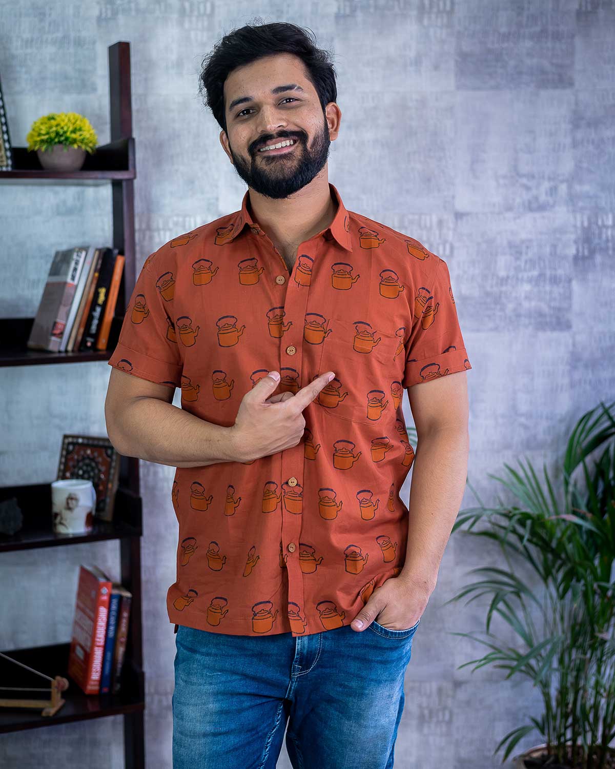 Rust color 'Signature Collection – Chai Kettle Print' Shirt.