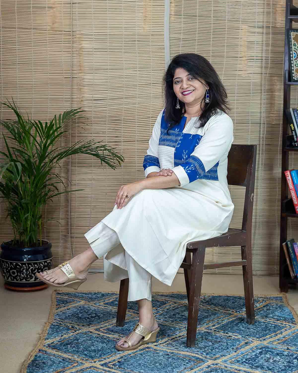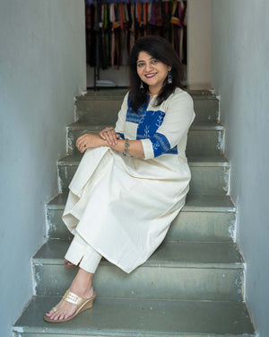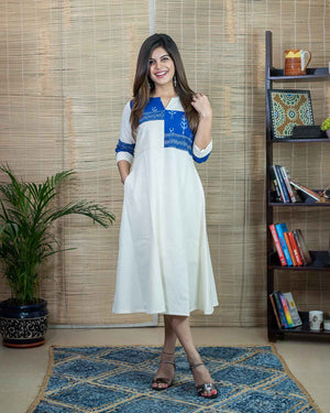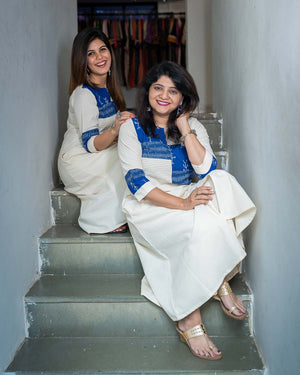 Cream Blue exclusive Ikkat Dress cum Kurta