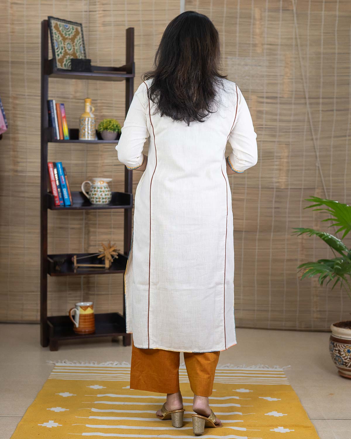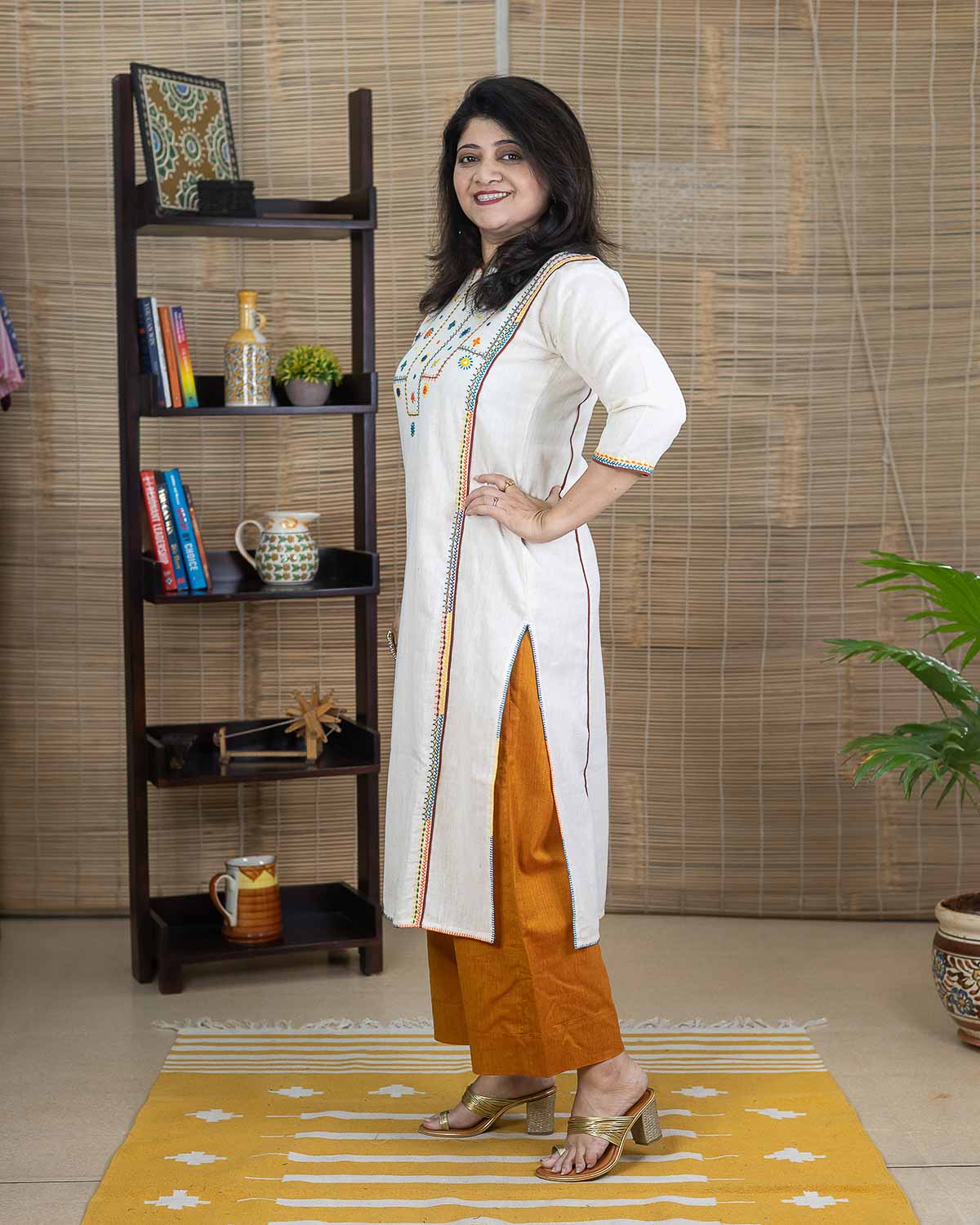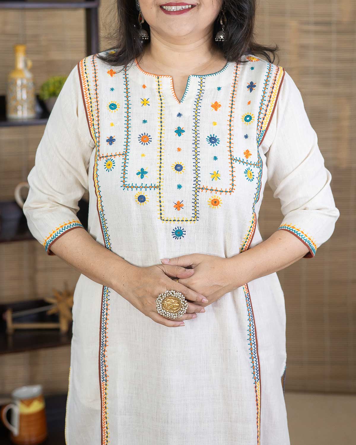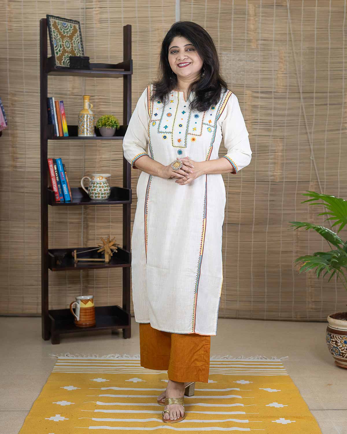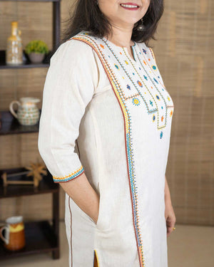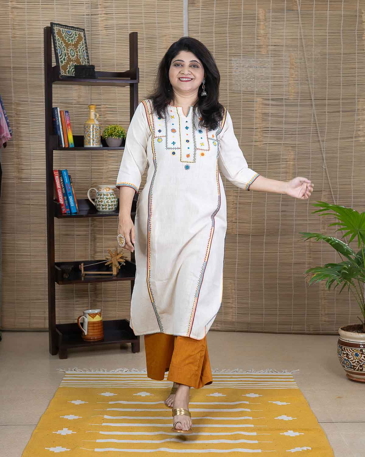 Cream Exclusive Organic Cotton kurta with Lambani handwork