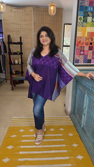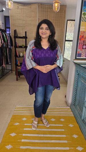 This is a special product "Exclusive hand-woven designer Ilkal Kaftan with a unique ikkat pattern in front and back. V neck.
