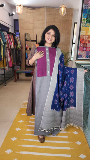 Exclusive gray blue Ikkat dupatta with Patterned kurta fabric