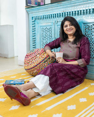 Exclusive Ikkat kurta with patchwork & Embroideries