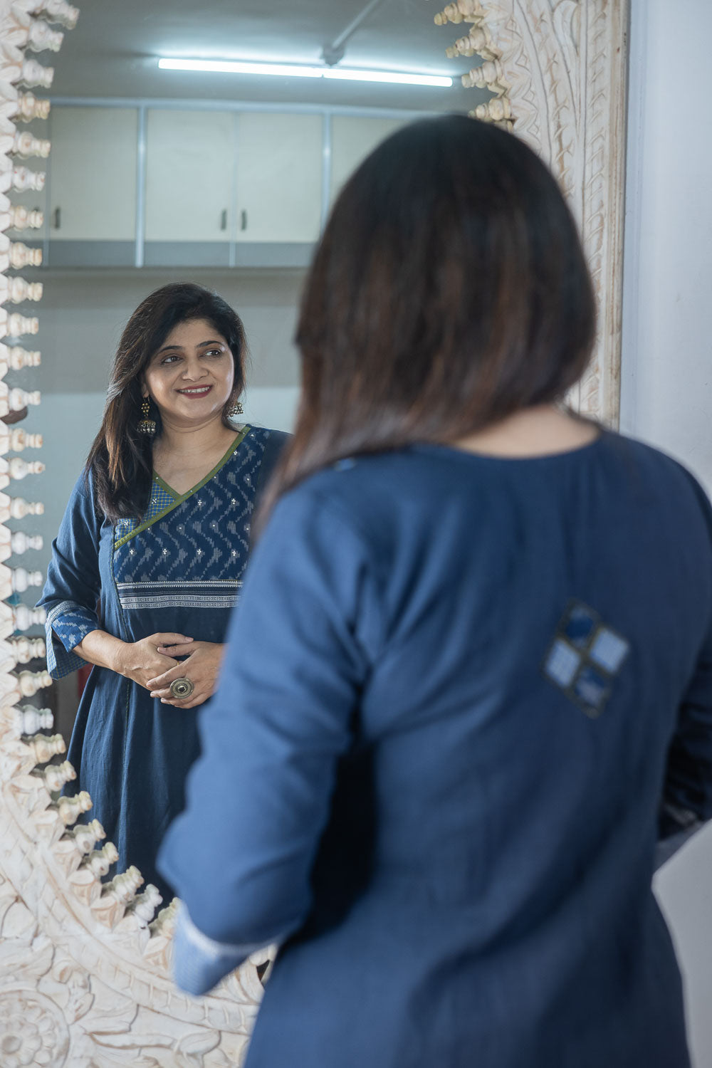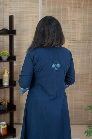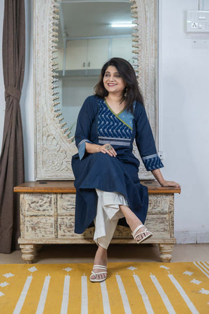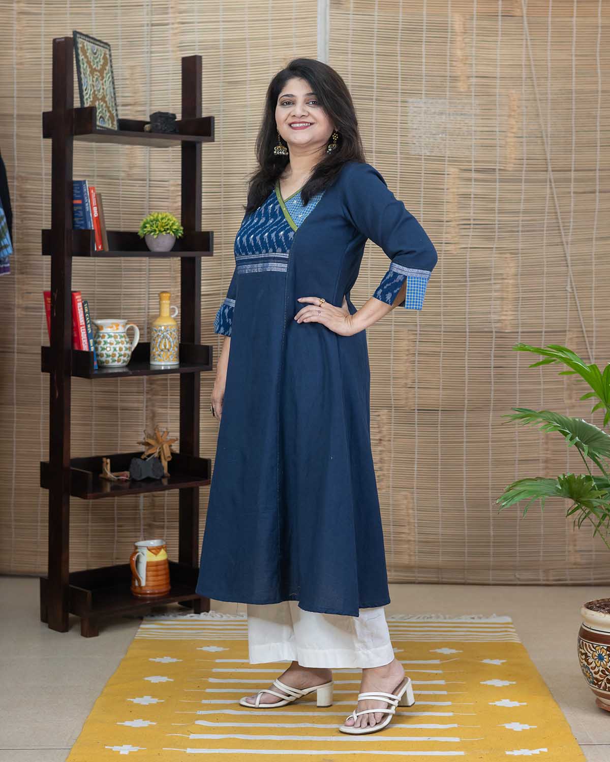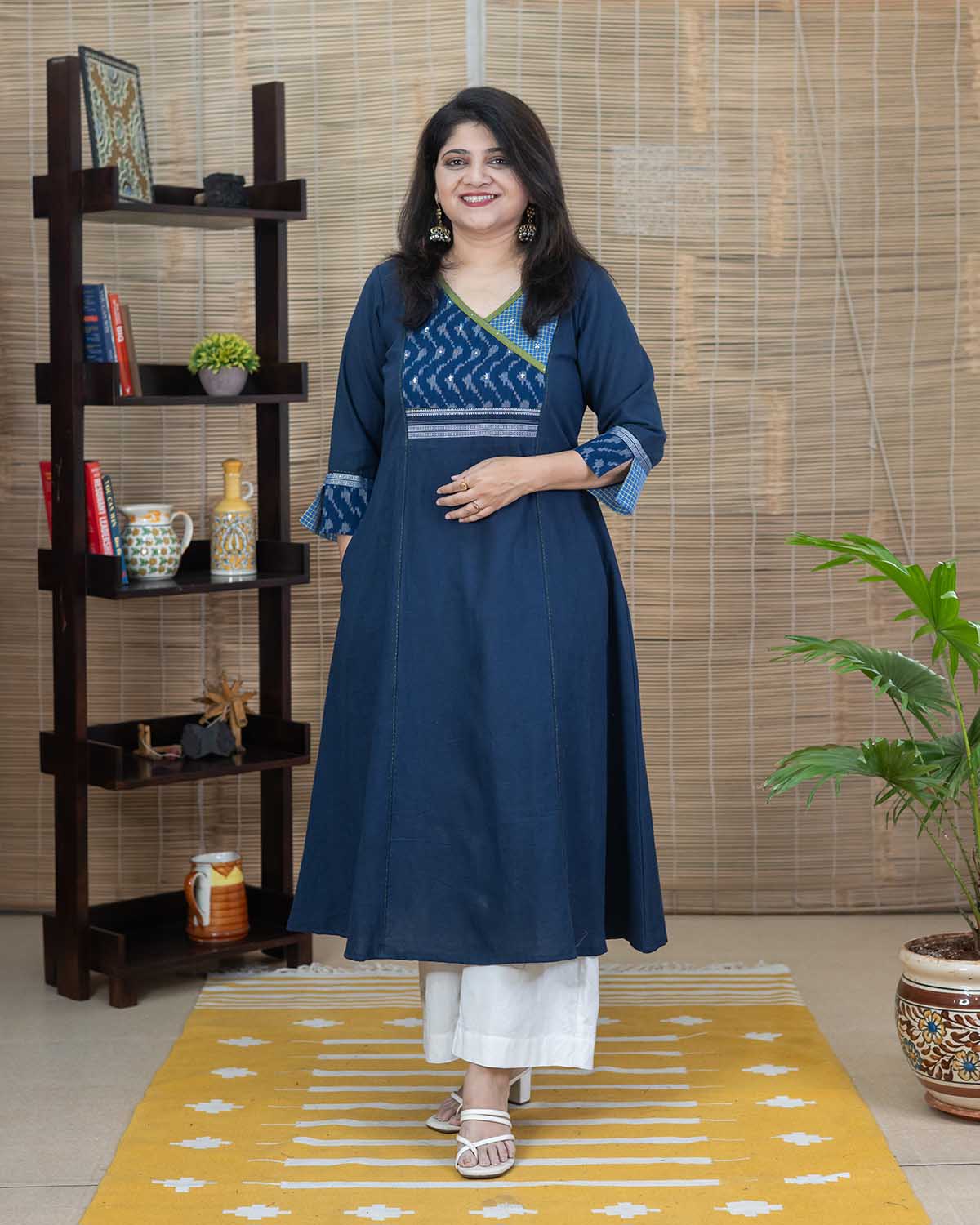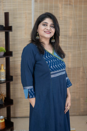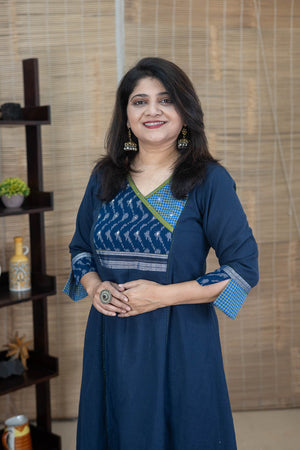 Exclusive Ikkat with Ilkal Navy blue kurta