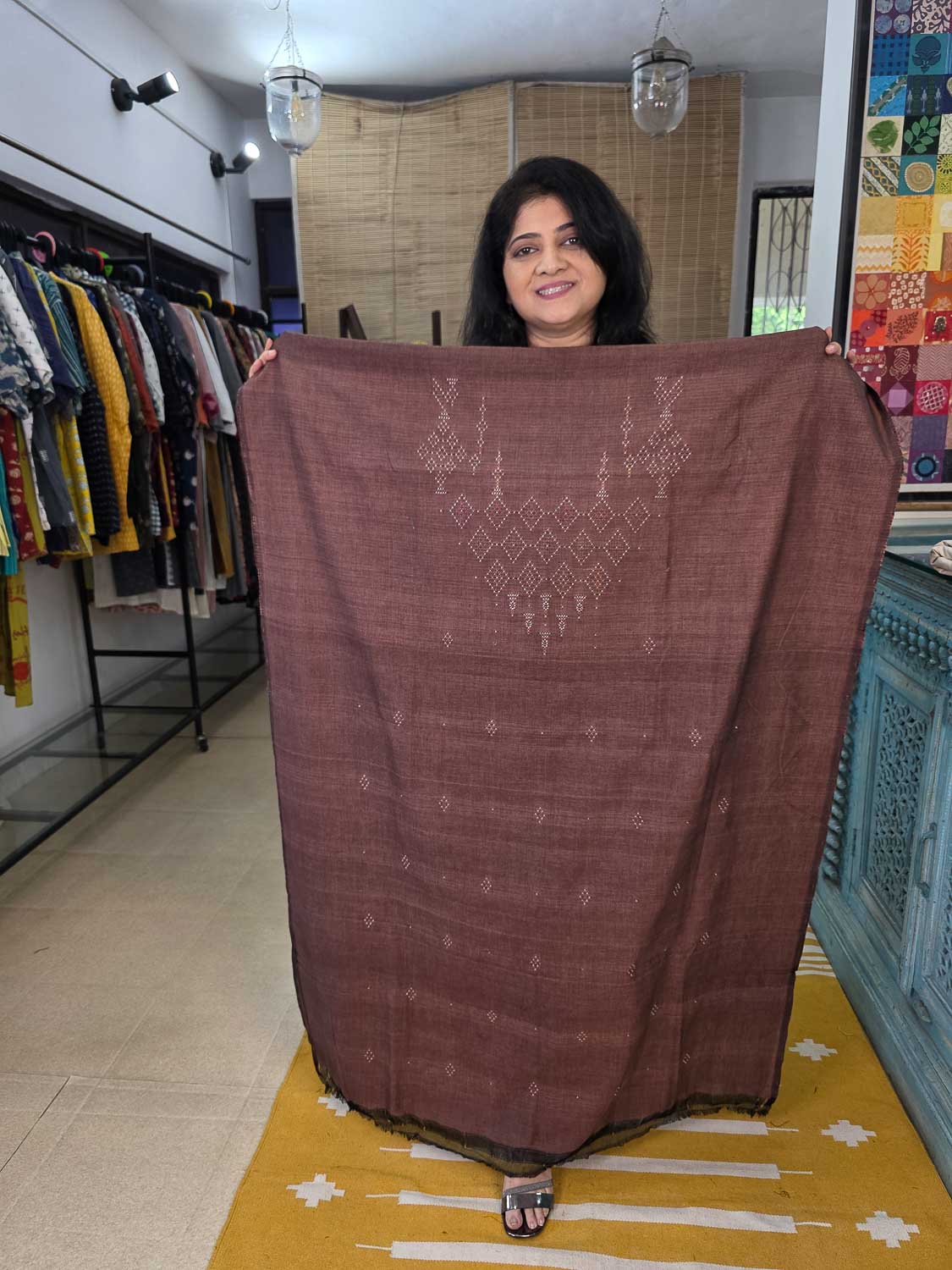 kurta fabric - unstitched 2.5 Mt with Tangalia/dana work in front and the sleeves. Ideal for Kurtas/kaftans. Brown kala cotton (organic cotton)