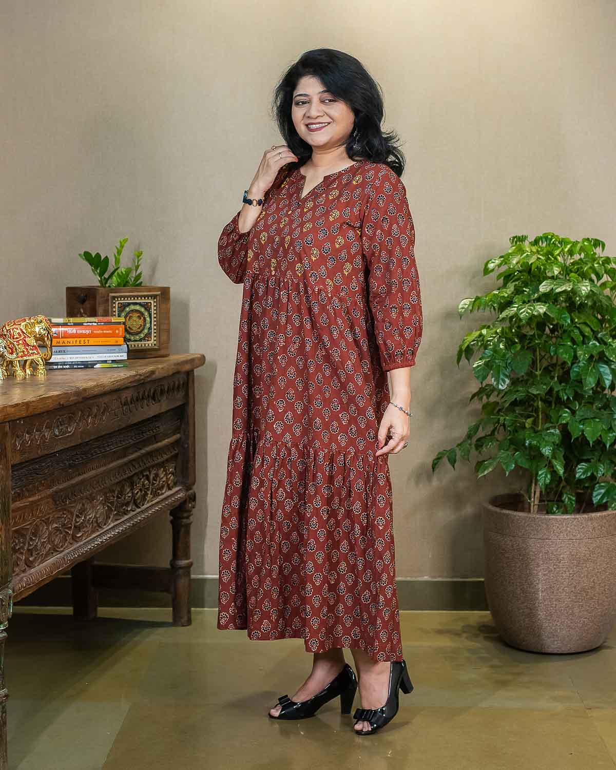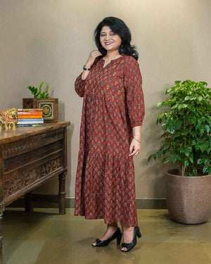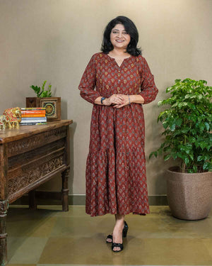 Flared, Red Ajrakh tiered dress