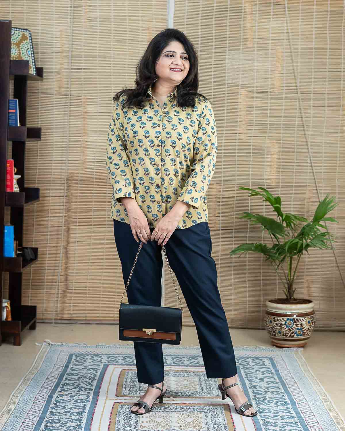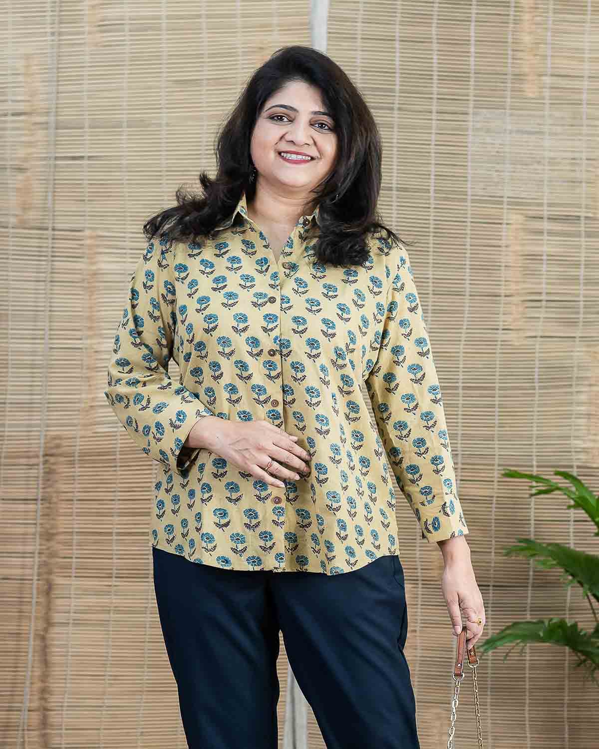 Elegant ajrakh pure cotton formal shirt. Its without lining very comfortable. Can be used as a formal wear or casual wear.