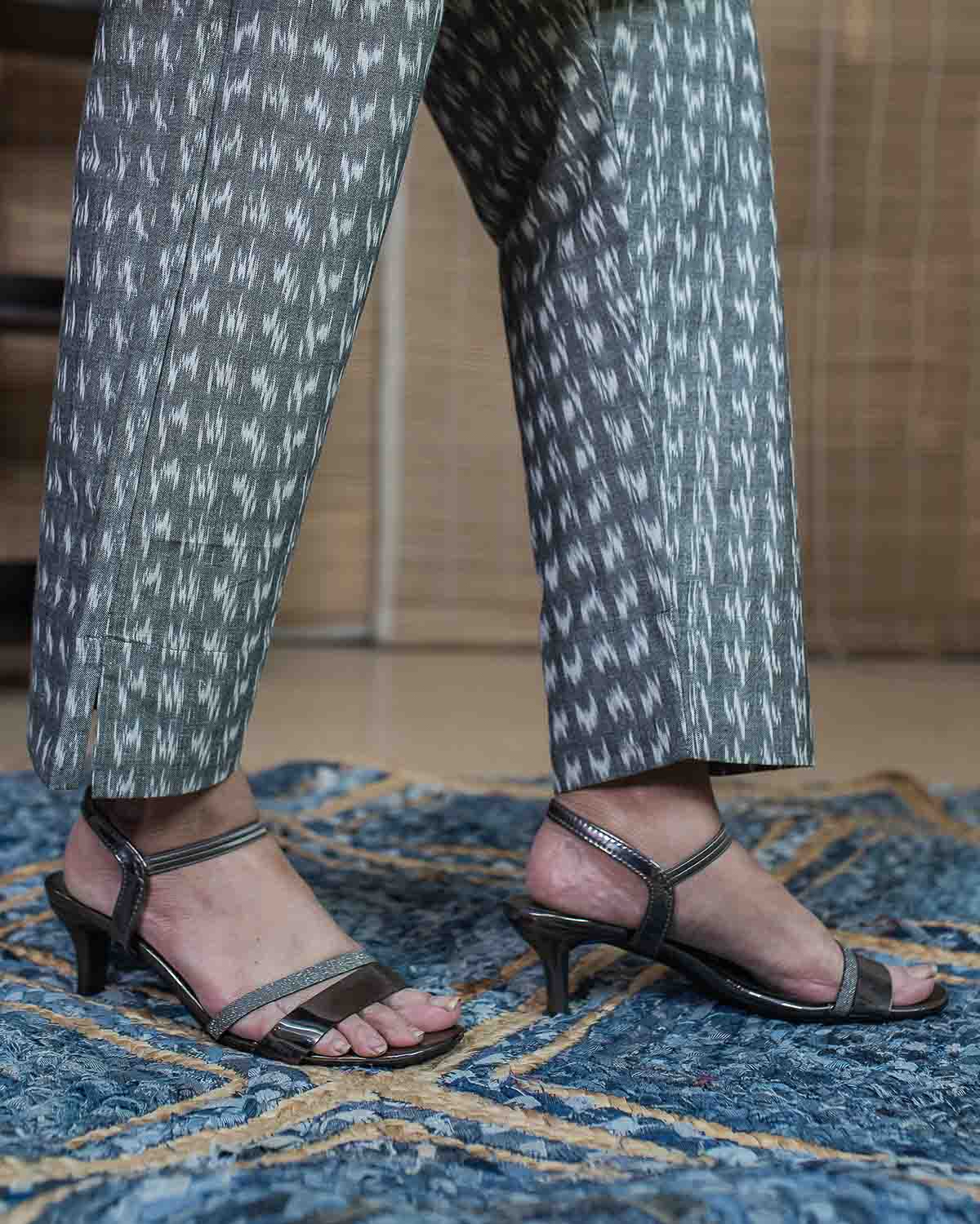 Exclusive weave and elegant Gray trouser in Ikkat. It has elastic at the back and string at front. It is a comfortable bottom wear which can be used with short tops or Long kurtas.