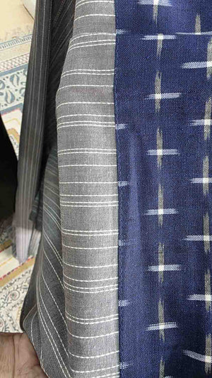 Gray lined with ikkat Patterned kurta fabric