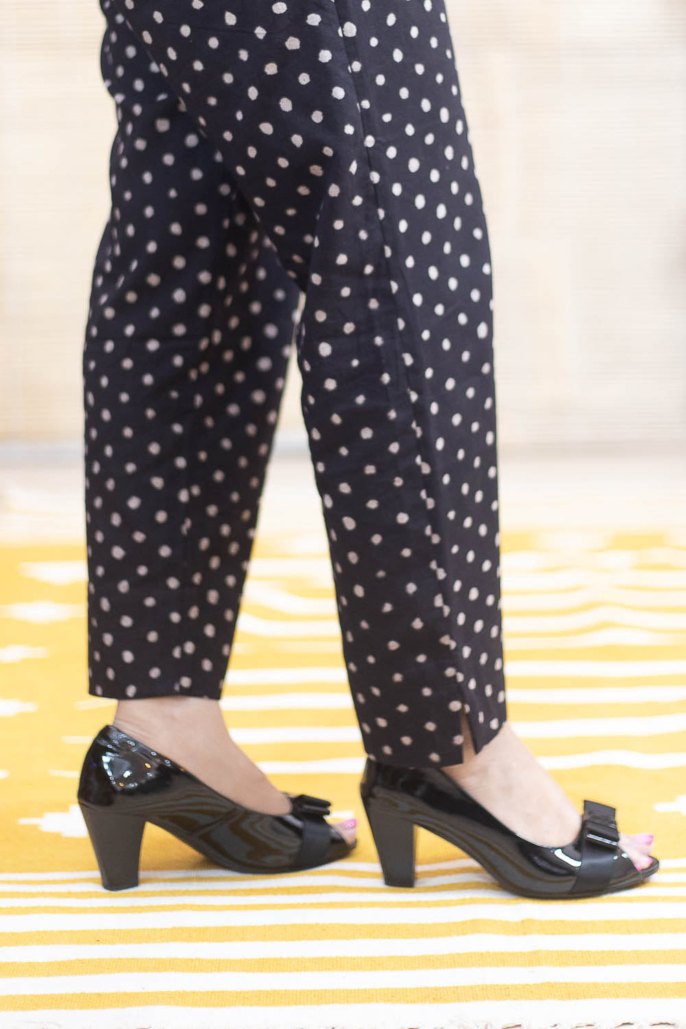 Black hand-block printed cotton Trouser / Pants. It is a comfortable bottom wear which can be used with short tops or Long kurtas.