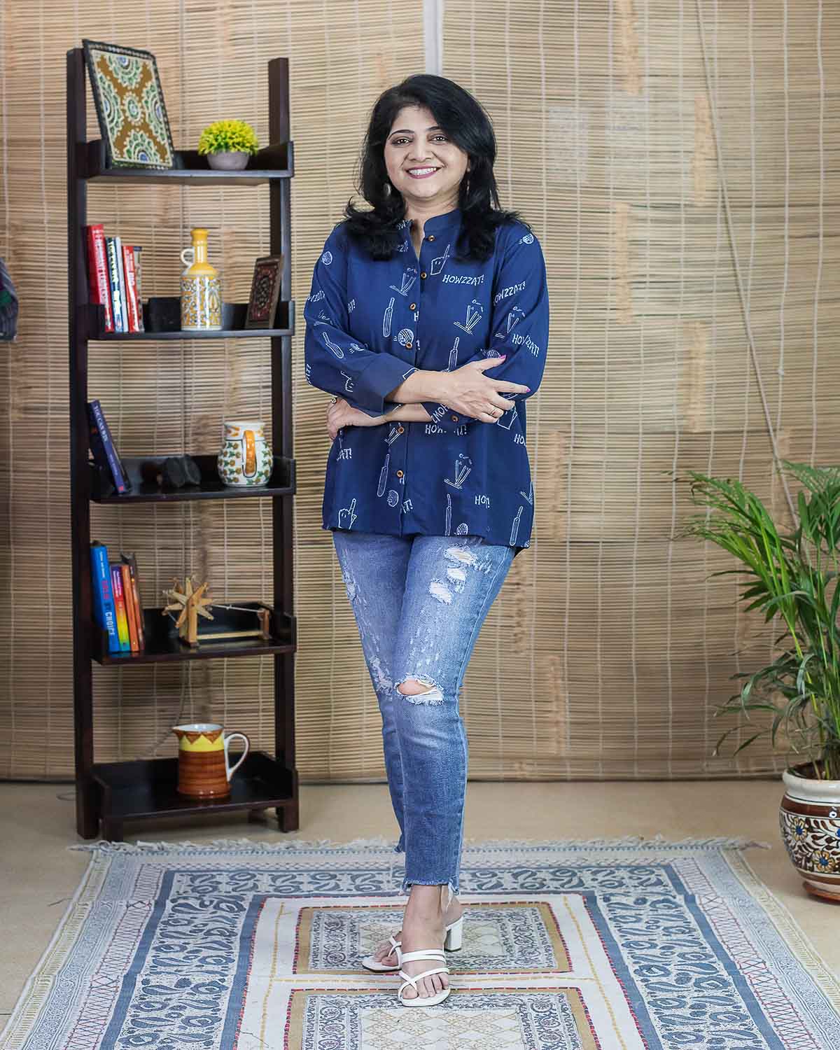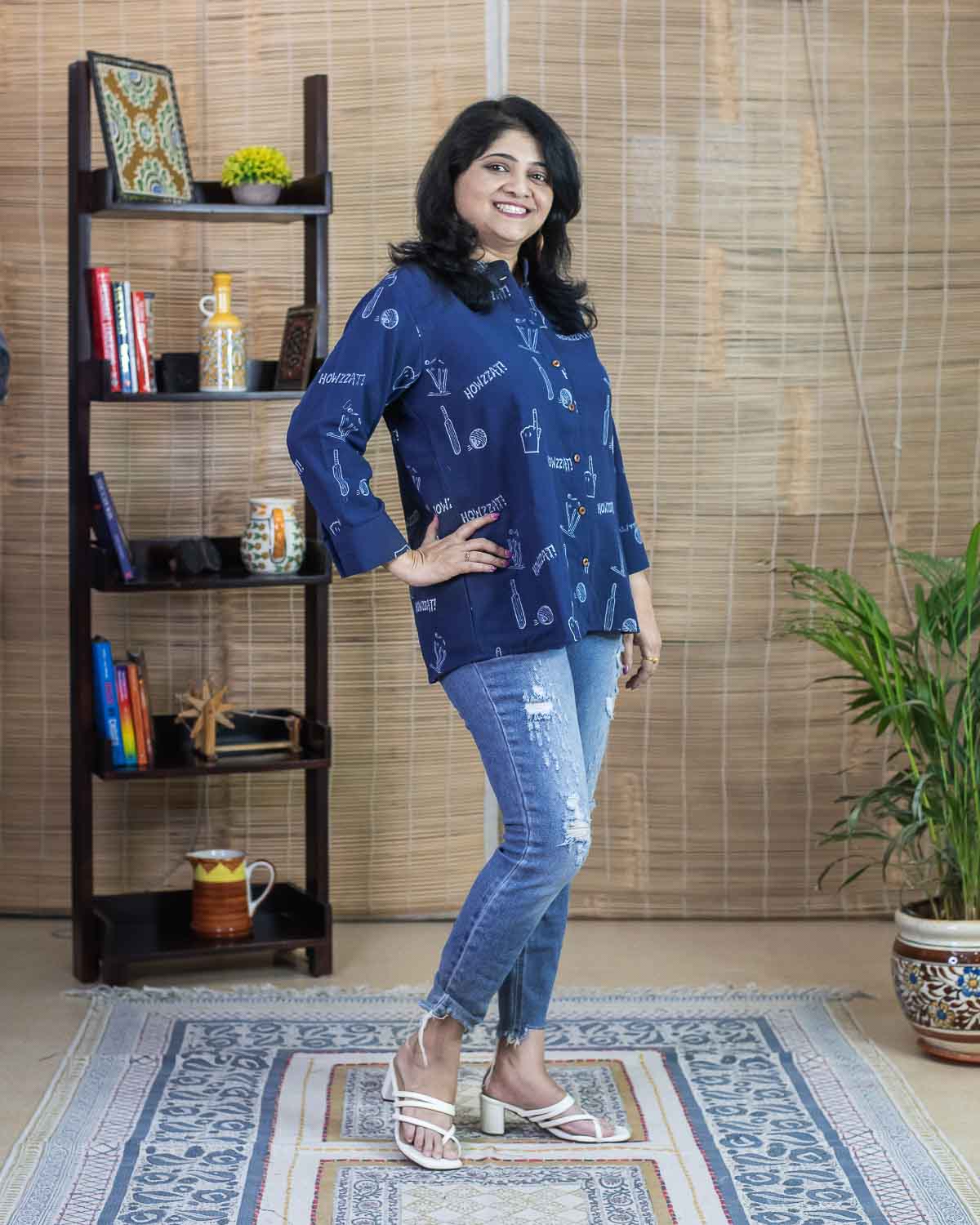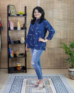 Exclusive in-house design. Wear this Signature Collection “Cricket” hand block printed cotton shirt with a fitted pant / jeans. Superior slub cotton.