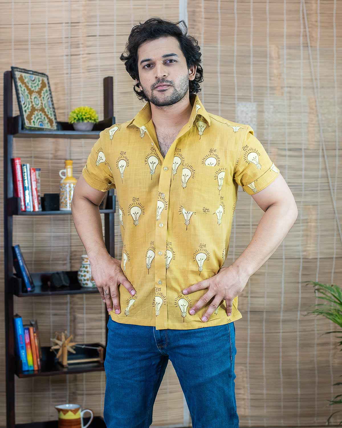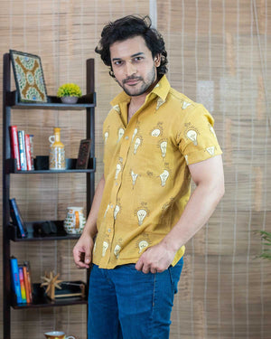 Mustard yellow 'Signature Collection – Ting (Bulb) Print' Shirt. Superior Slub cotton.