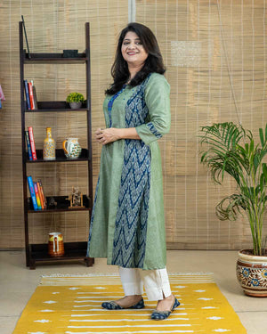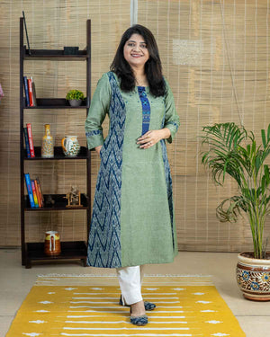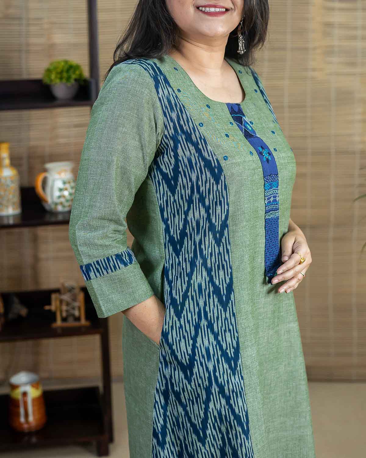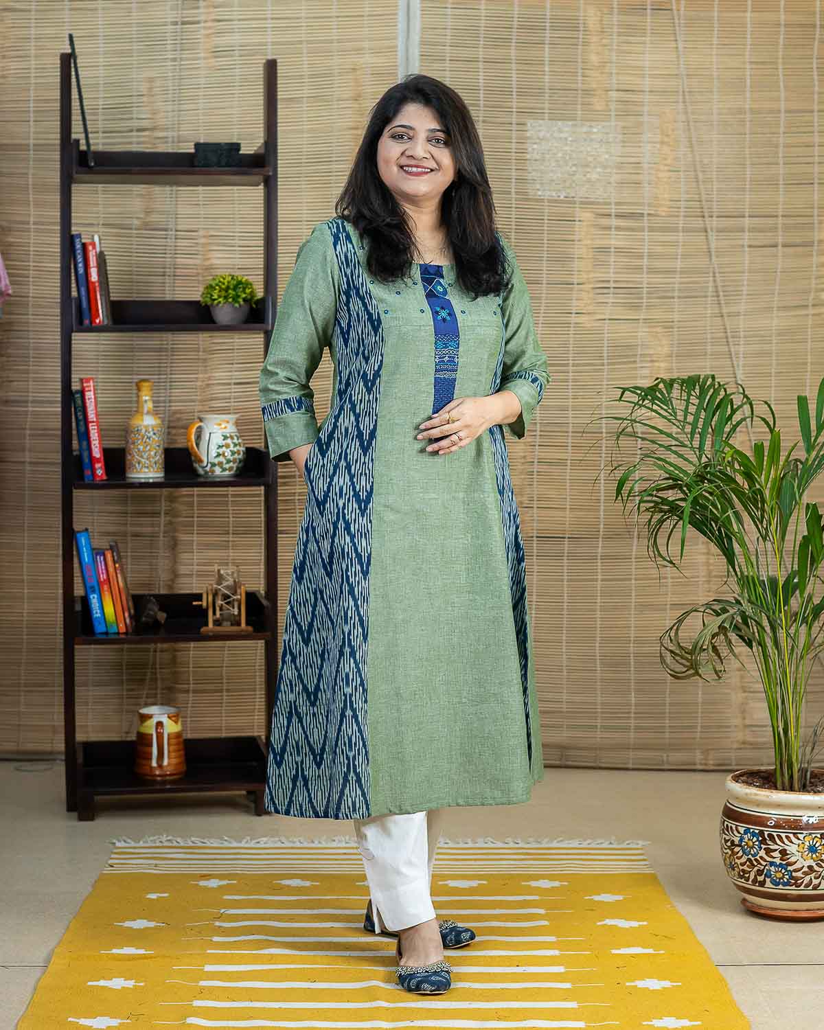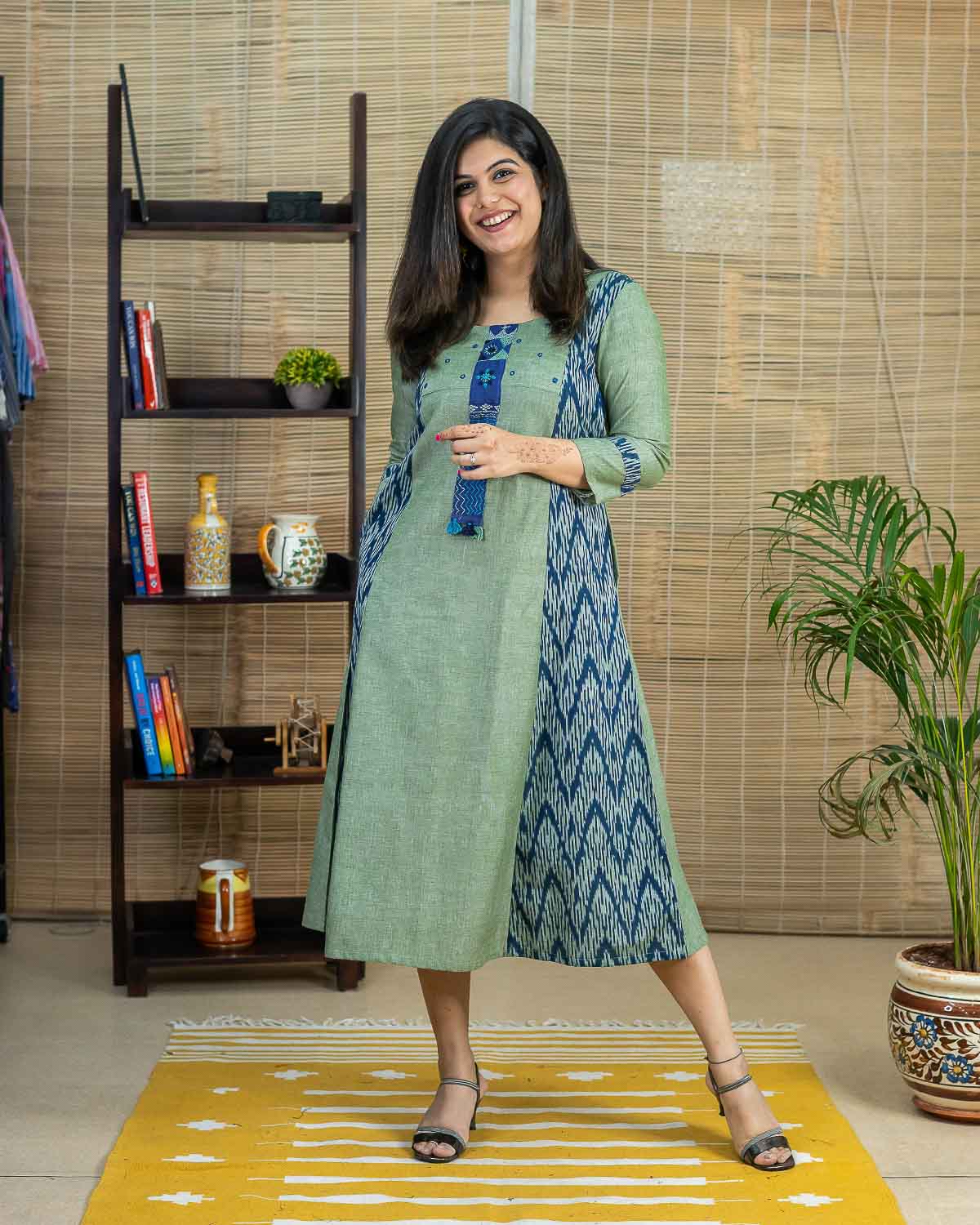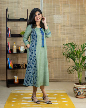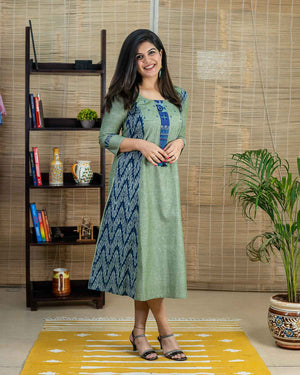 Light Green Ikkat & Lambani Handwork exclusive Dress