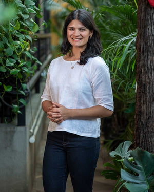 Linnen white short top with Sleeves (Till elbow) Short top.