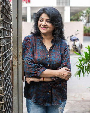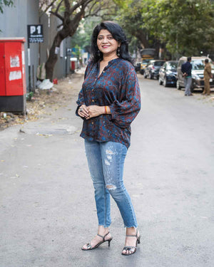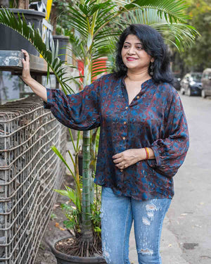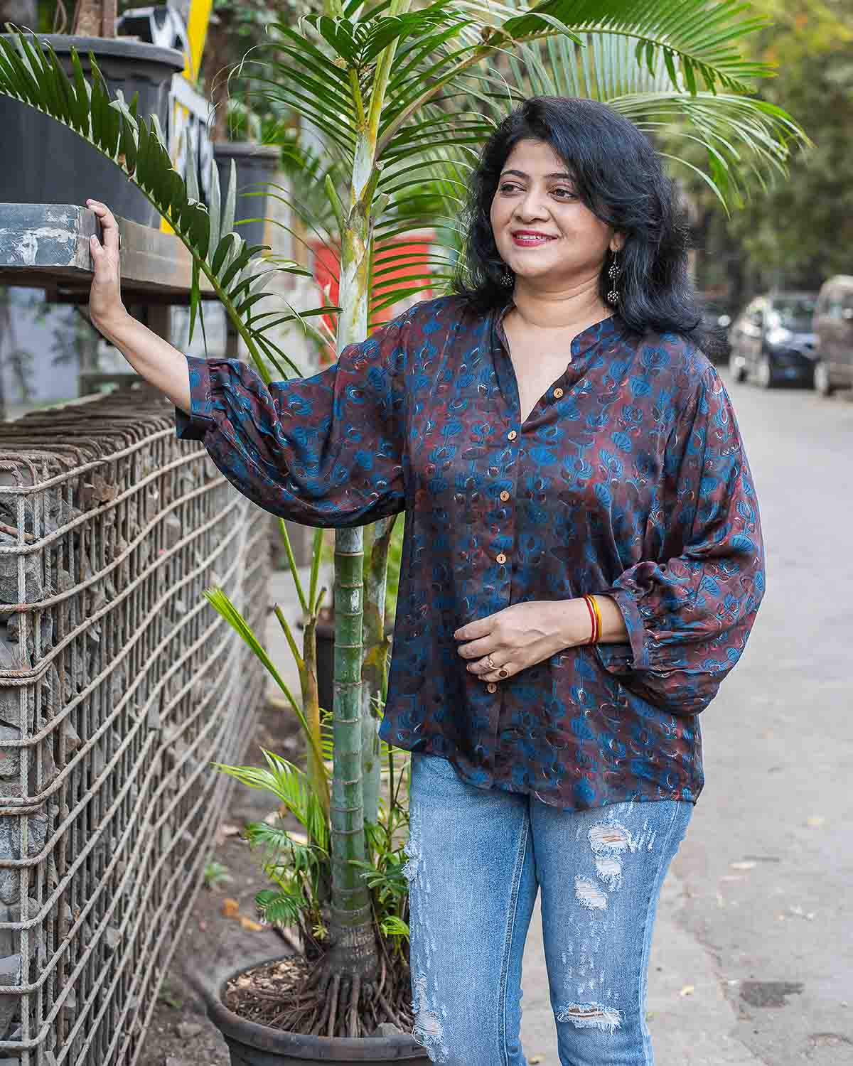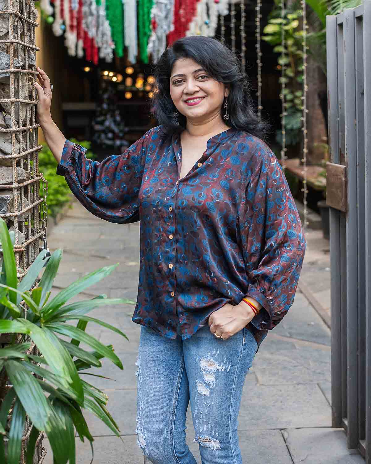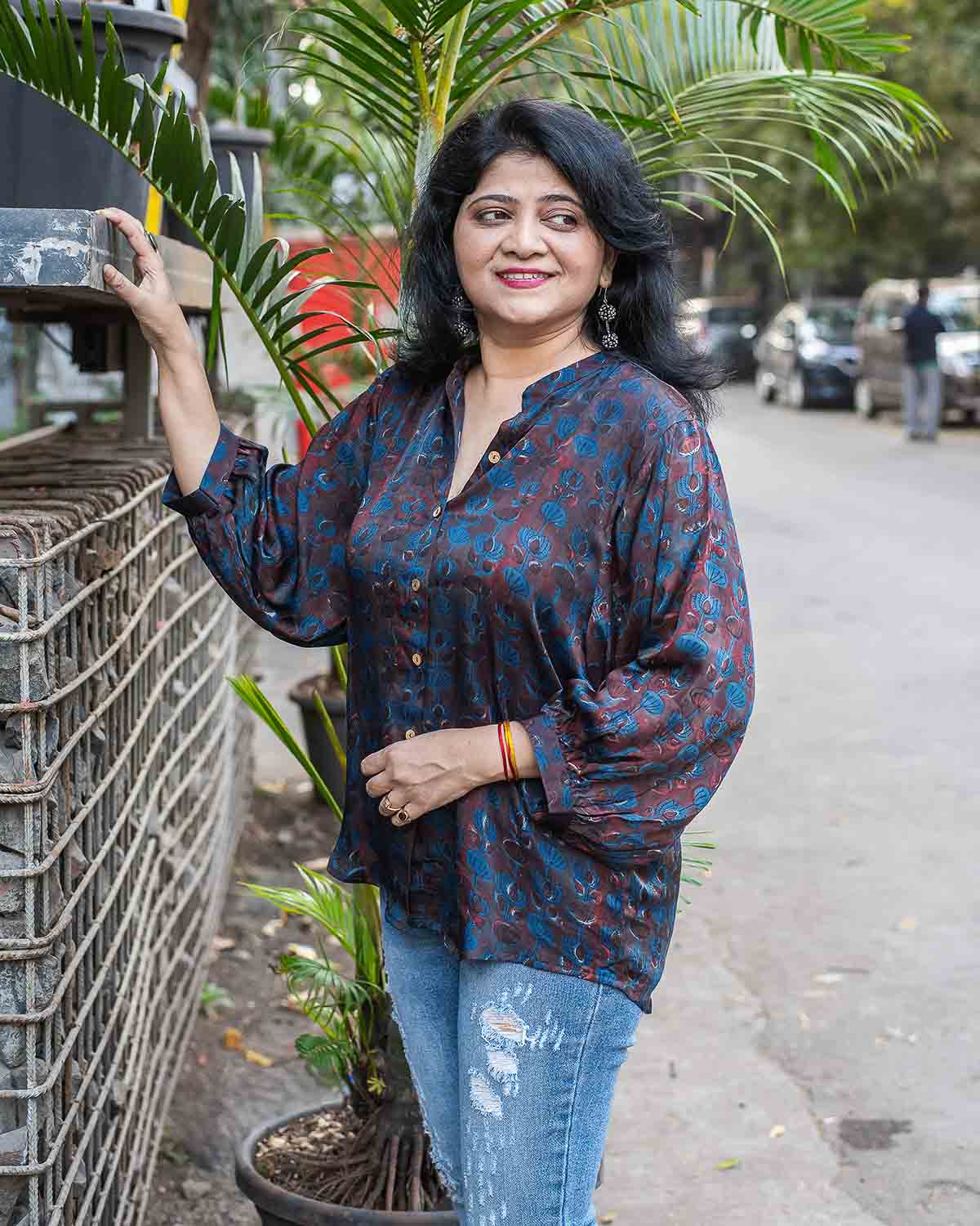 Modal silk Maroon Indigo Short Kurta - comfort fit