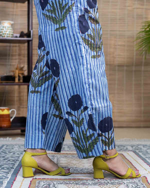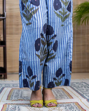 Mughal butta hand block print in pure cotton fabric. A palazzo with 2 side pockets. Comfortable & trendy. Elastic in the back, string to adjust in the front.