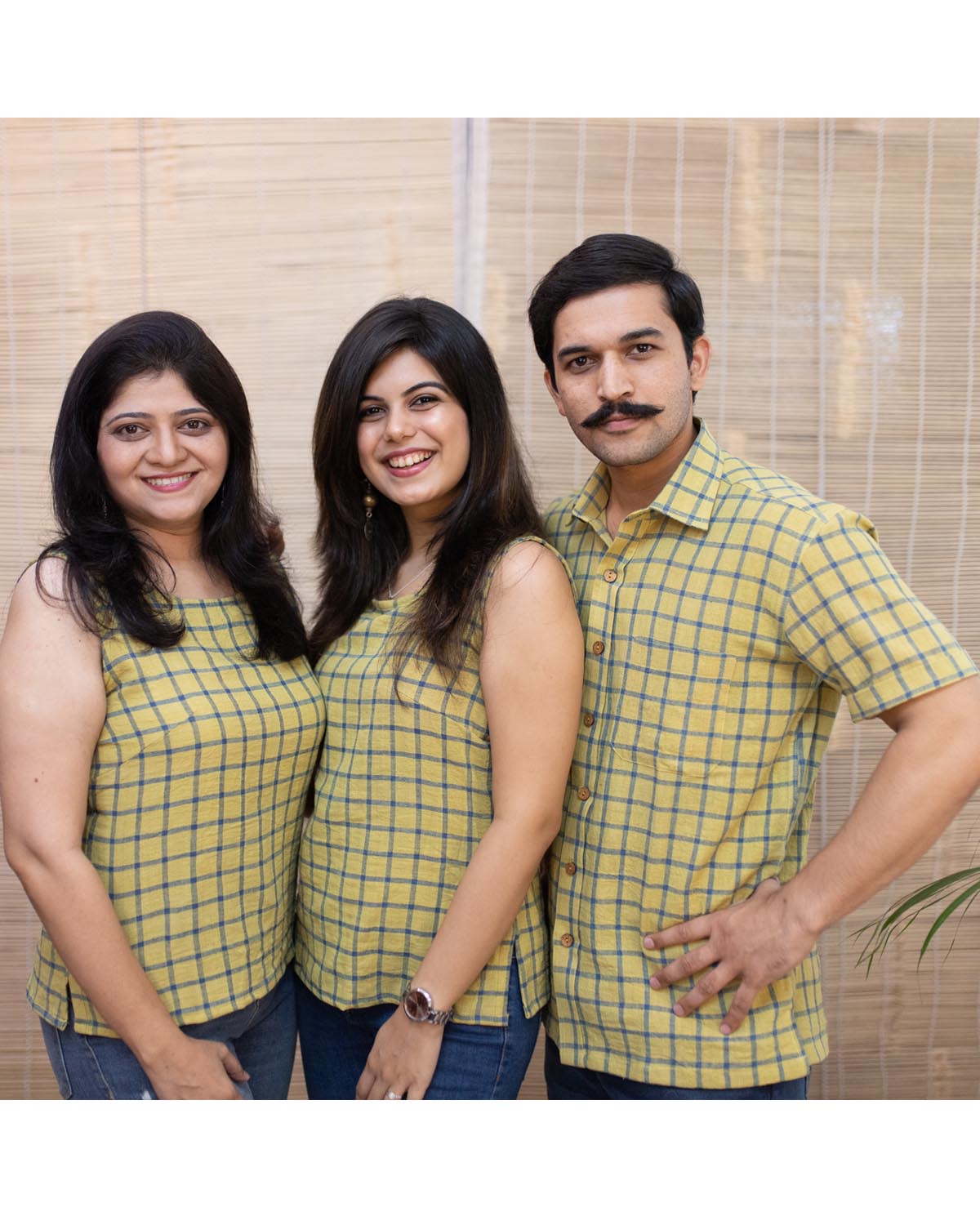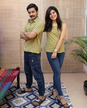 Mustard yellow sleeveless short top in Kala cotton. Wear this sleeveless short top with a Trousers, Jeans / Skirt.