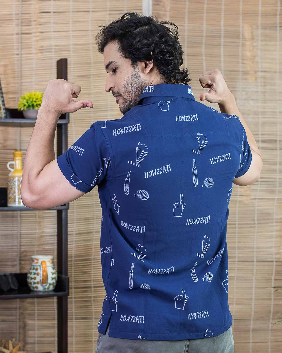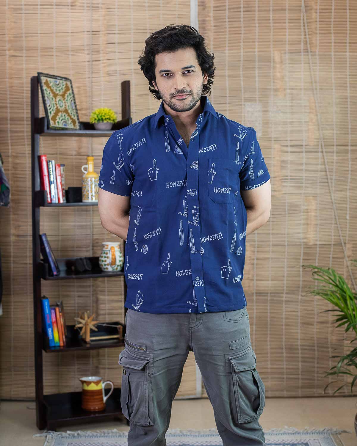 Indigo 'Signature Collection – Cricket Print' Shirt. Superior Slub cotton.