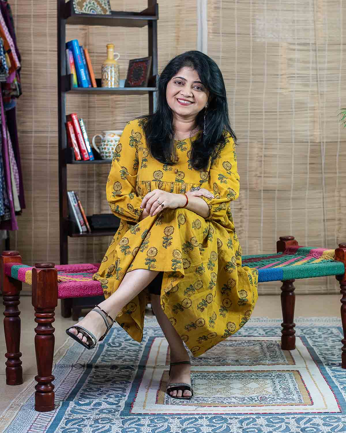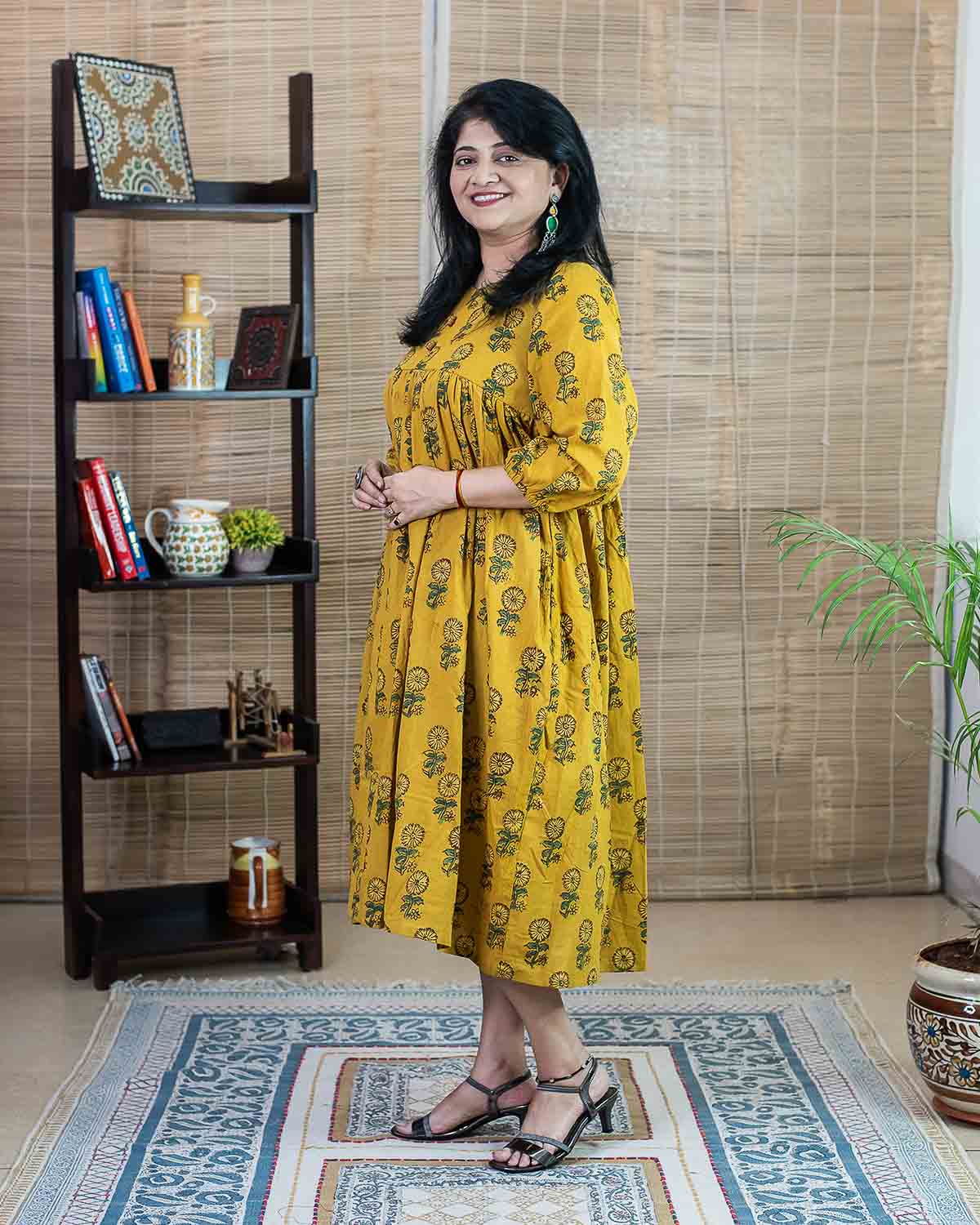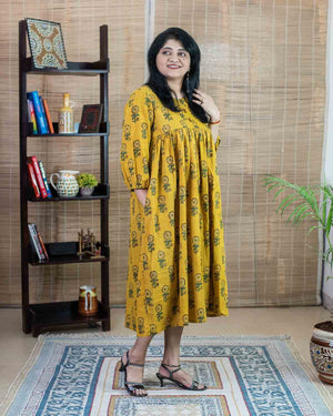 "No fit" Yellow ajrakh long dress