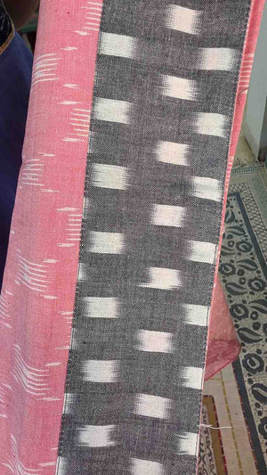 Patterned kurta fabric - unstitched 2.5Mt with hand work. Ideal for Kurtas/kaftans. Pure cotton with ikkat handwork & patchwork. Highlighting kantha sequin work in the front.