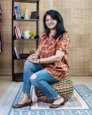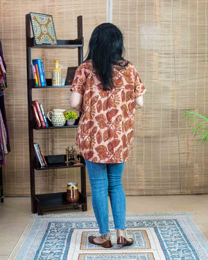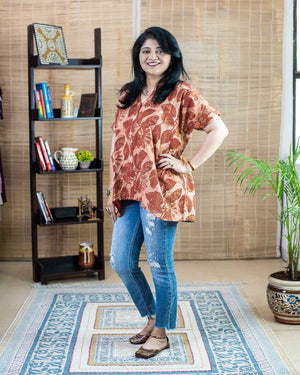 Wear this vanaspati hand block printed slub cotton top with a fitted pant / jeans.