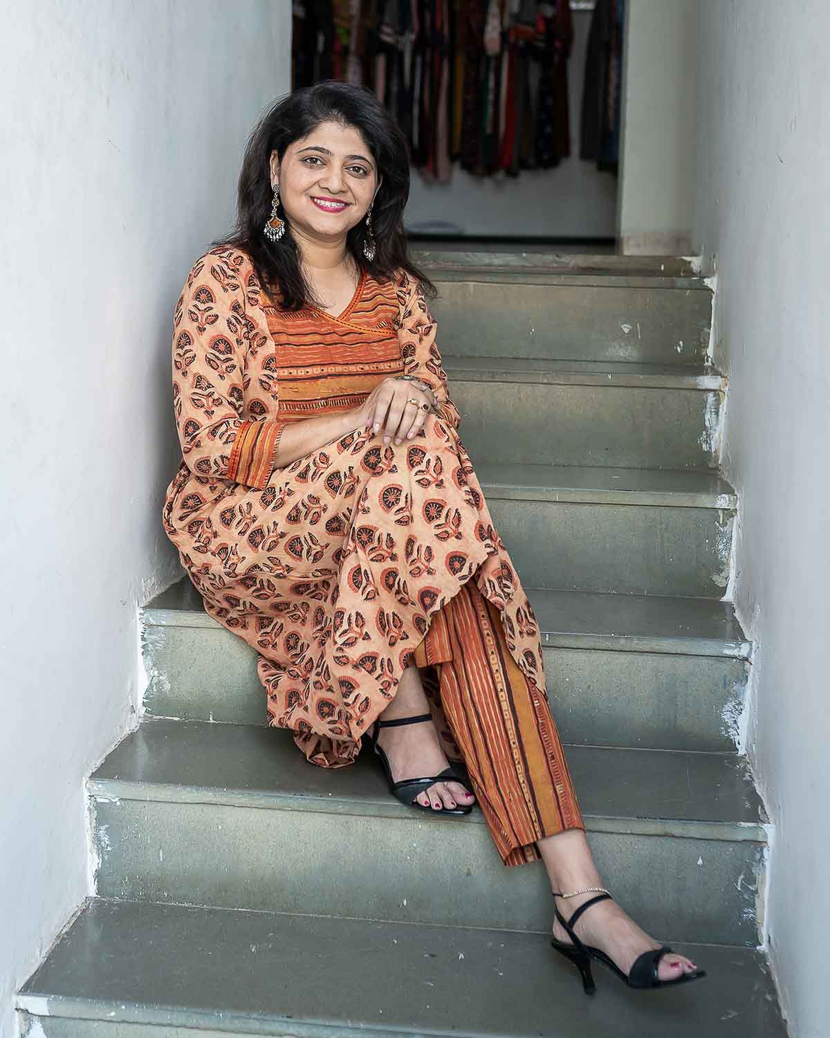 Elegant Vanaspati hand-block printed Peach Trouser / Pants. It is a comfortable bottom wear which can be used with Long kurtas.