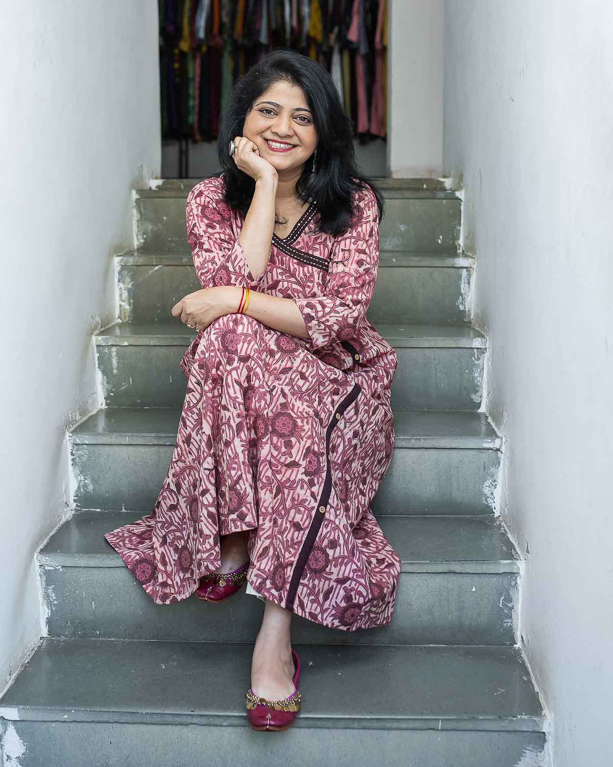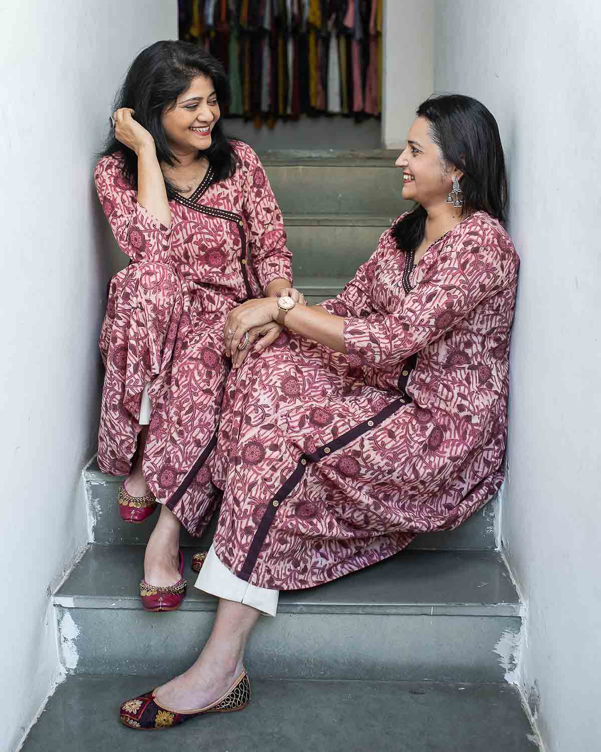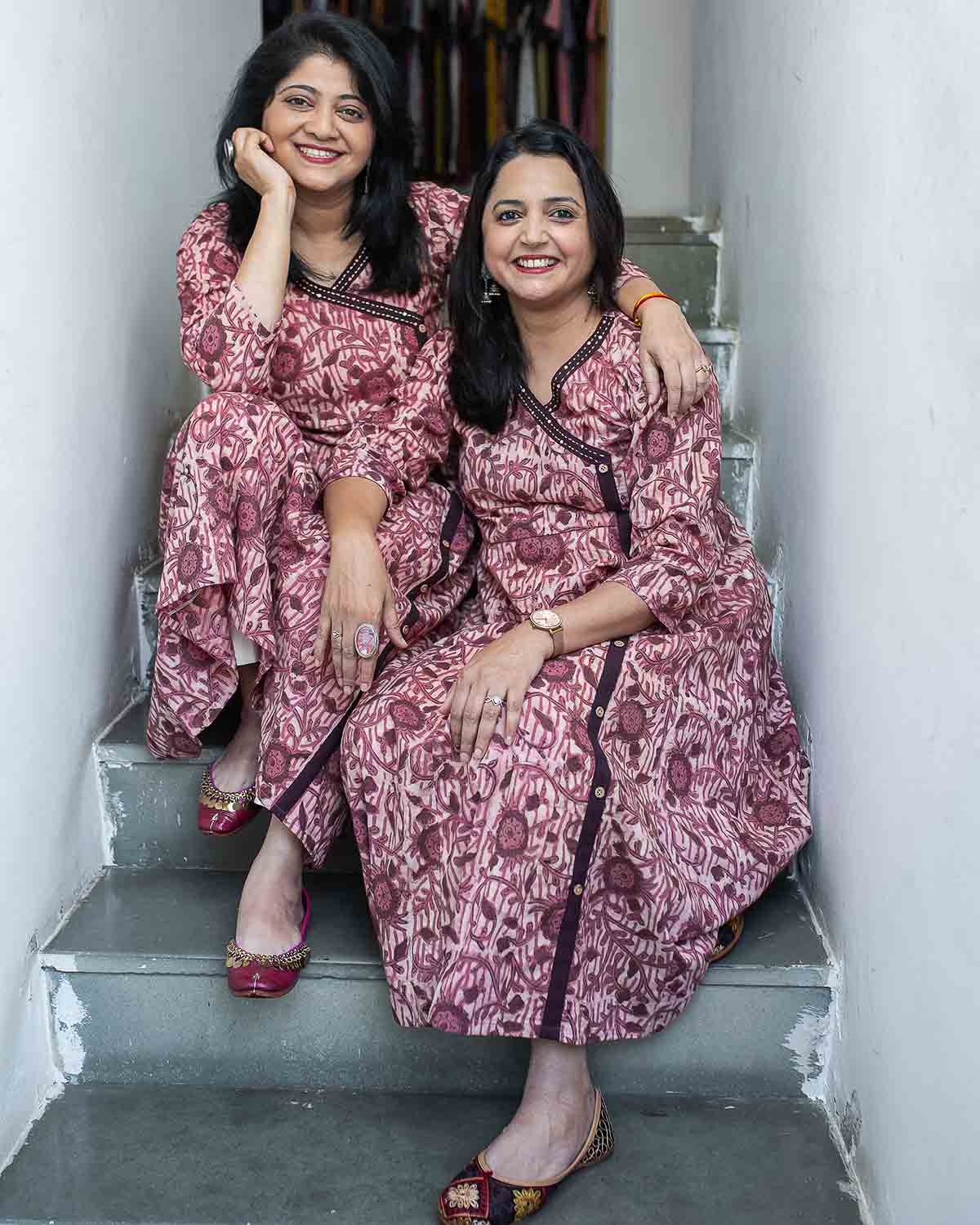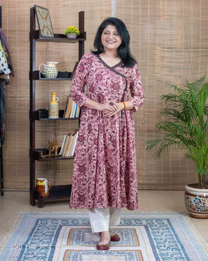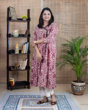Pink brown Handblock printed Anarkali