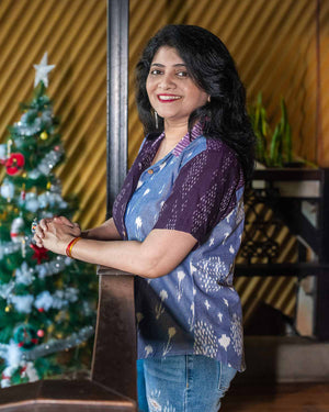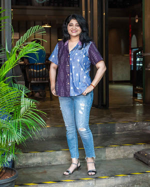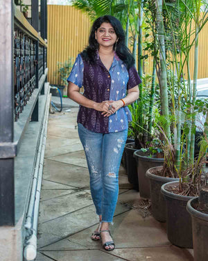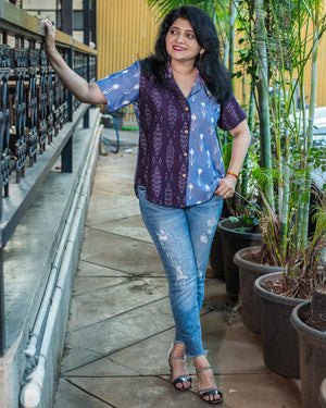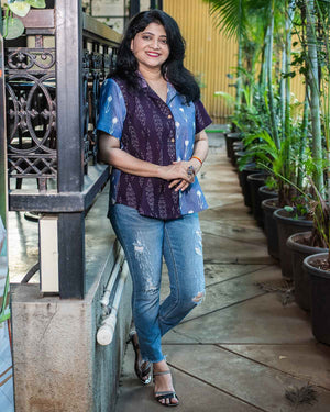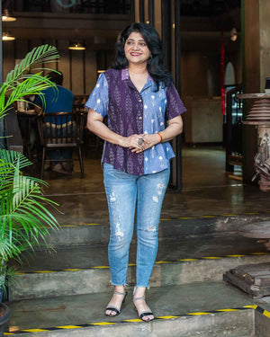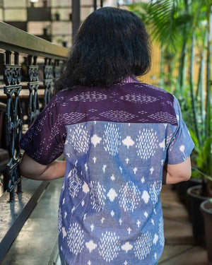Purple blue Ikkat patchwork shirt